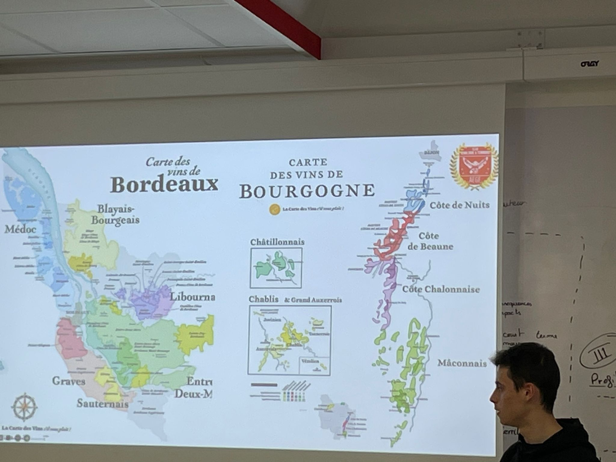 Nous avons abordé les étapes essentielles d’une dégustation : observation, premier nez, second nez, rétro-olfaction, etc. Des notions telles que les formats de bouteilles, les parties d’un verre ou encore la réglementation liée aux étiquettes ont également été abordées.