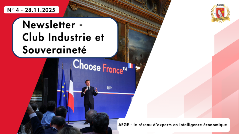 Le Club Industrie & Souveraineté de l’AEGE – le réseau d’experts en intelligence économique – vous présente sa nouvelle newsletter :